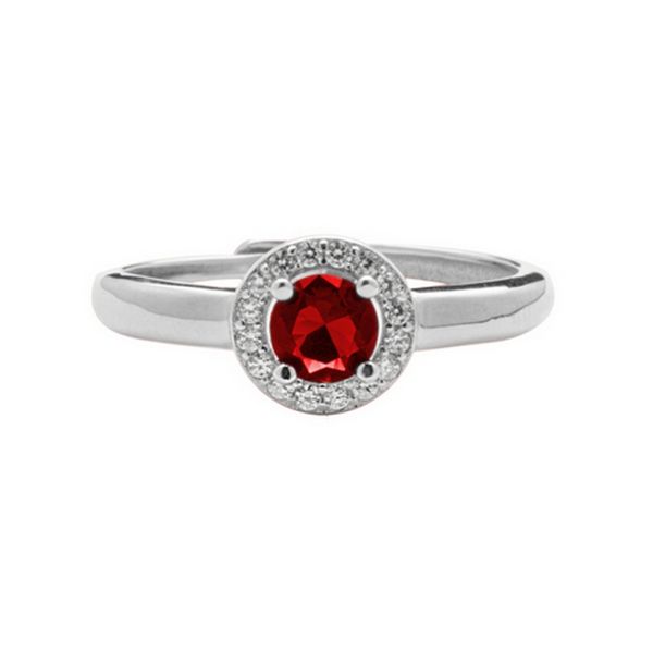 Anello regolabile realizzato in argento 925 arricchito da pietra centrale rossa attorniata da zirconi bianchi