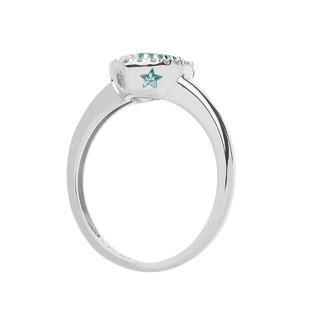 Conquista il suo cuore con l’anello di diamanti e acquamarina della collezione ‘Azzurra Prestige’, una sinfonia in chiave azzurra dedicata ai limpidi colori del mare e del cielo. Un anello adatto ad essere ideale per ogni occasione, grazie alla stella traforata sarà un talismano per sempre
