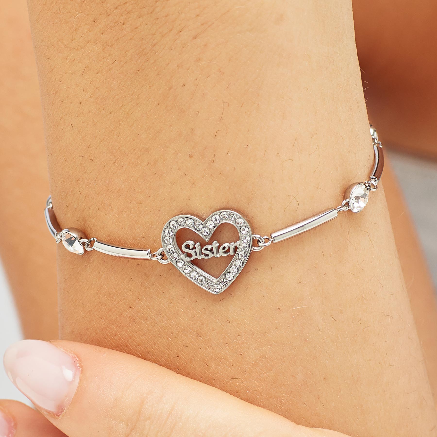 Questo bracciale della collezione Chakra di Brosway è realizzato in acciaio e cristallo ed è impreziosito da un cuore centrale a forma di cuore con la scritta ‘Sister’. Chiusura a moschettone e misura regolabile grazie ad una serie di anellini terminali