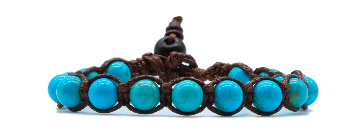 Il turchese, di colore azzurro tendente al verde, rappresenta il cerchio della vita e il sentimento dell’amore. Chi lo porta con sé trova in esso serenità, saggezza ed equilibrio nelle emozioni. Misura regolabile