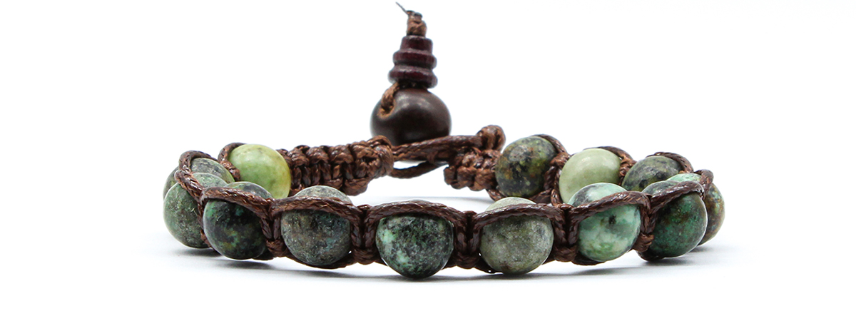 Il turchese africano è tra le pietre più antiche della tradizione tibetana. A questa pietra viene riconosciuto il potere di depurazione e protezione dalle energie positive. Misura regolabile