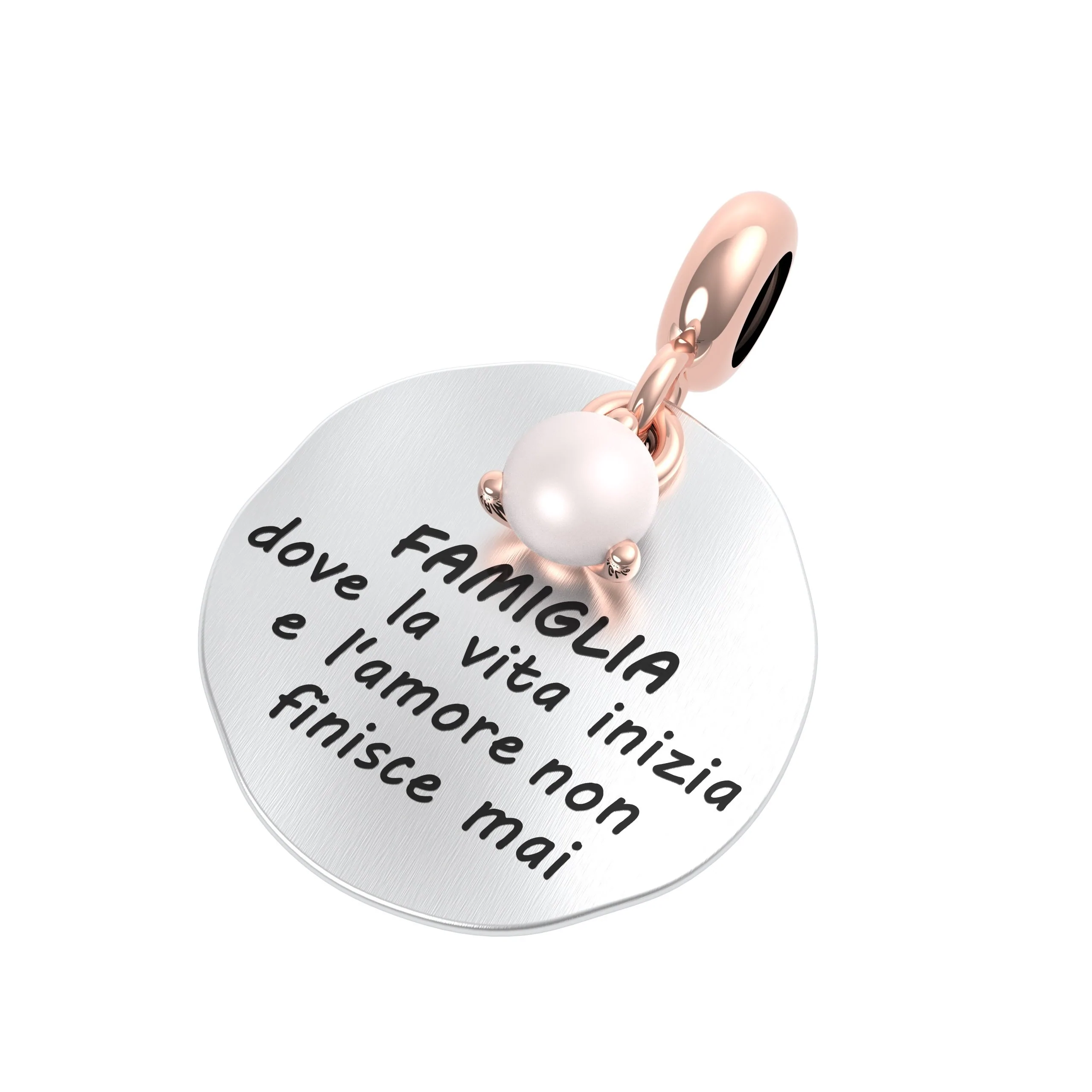 Questo charm della collezione Rerum Gioielli è realizzato in argento 925. E’ arricchito da una perla, il tesoro per eccellenza. La perla viene custodita all’interno di una conchiglia, tenuta al riparo dagli elementi e preservata con cura. Rappresenta i valori più veri, la nostra famiglia, le nostre radici, il nostro mondo.