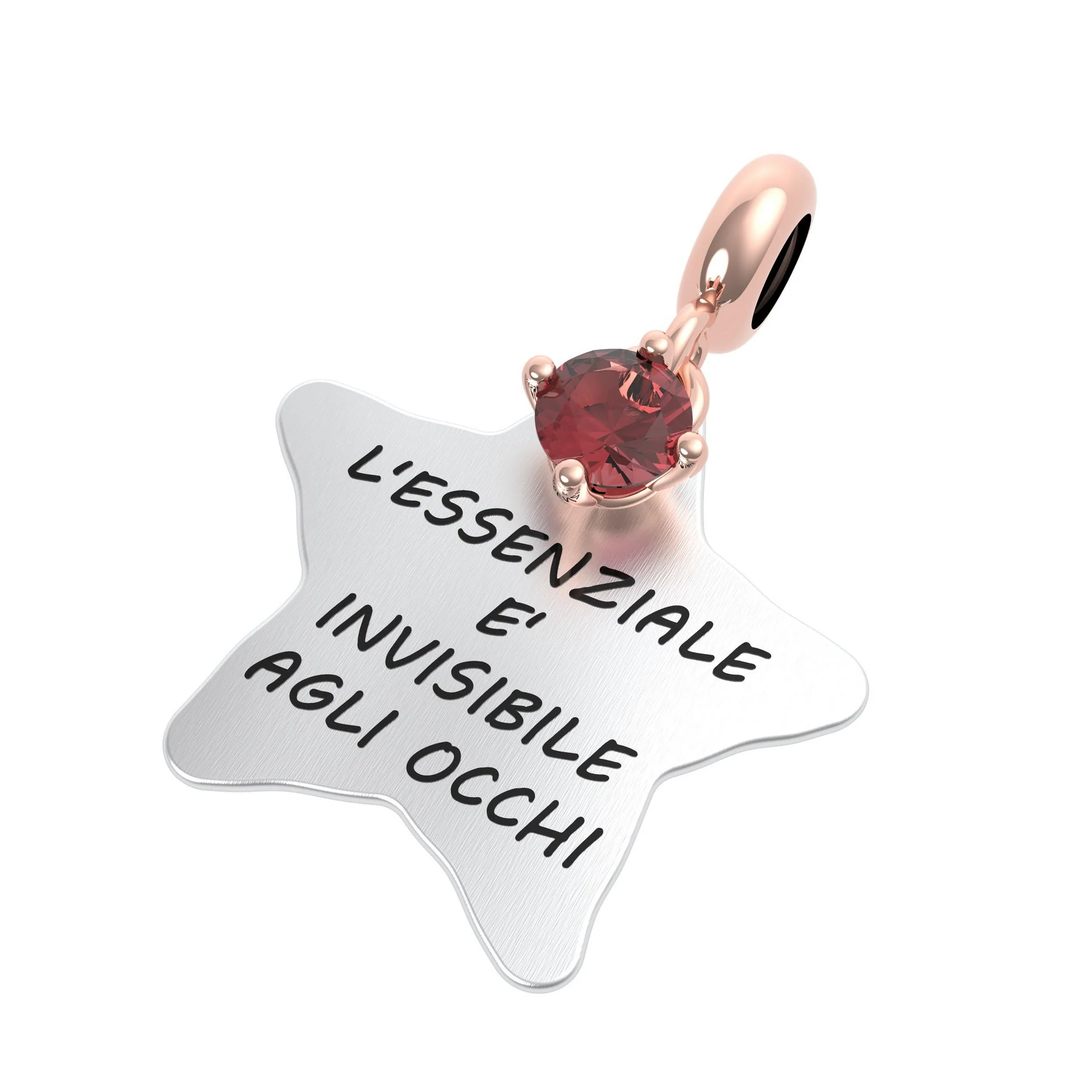 Questo charm della collezione Rerum Gioielli è realizzato in argento 925 ed è arricchito da pietra naturale granato. Un’antica leggenda medioevale assegnava, a questa pietra, il potere di portare luce nell’oscurità. Una metafora per indicare la saggezza. Conoscenza e saggezza si tramandano attraverso i detti, le frasi celebri, i proverbi e le citazioni in cui spesso ci riconosciamo e nei quali troviamo la nostra musa ispiratrice