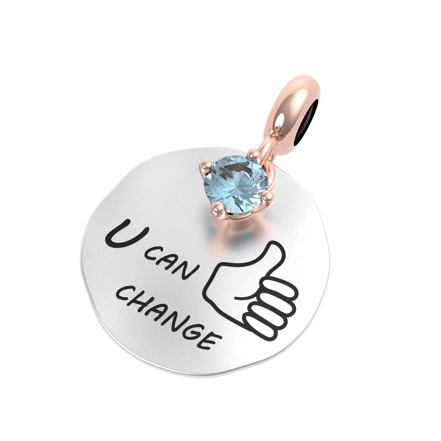 Questo charm della collezione ‘Propositi’ di Rerum Gioielli è realizzato in argento 925 ed è arricchito da pietra naturale topazio azzurro. Applicabile su collana o bracciale a piacimento