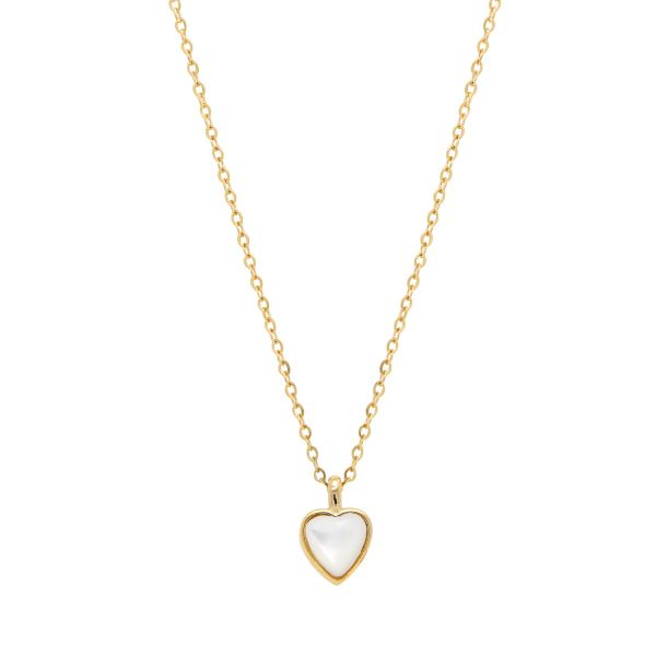 Girocollo della collezione ‘Dal mare con amore’ di Chimiama Gioielli realizzato in argento 925 con trattamento pvd oro giallo. Pendente a forma di cuore arricchito da madreperla. Chiusura a moschettone e misura regolabile grazie ad una serie di anellini terminali