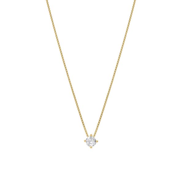 Girocollo della collezione ‘Tutti pazzi per il colore’ di Chimiama Gioielli realizzato in argento 925 con trattamento in pvd oro giallo e zirconi bianco. Chiusura a moschettone