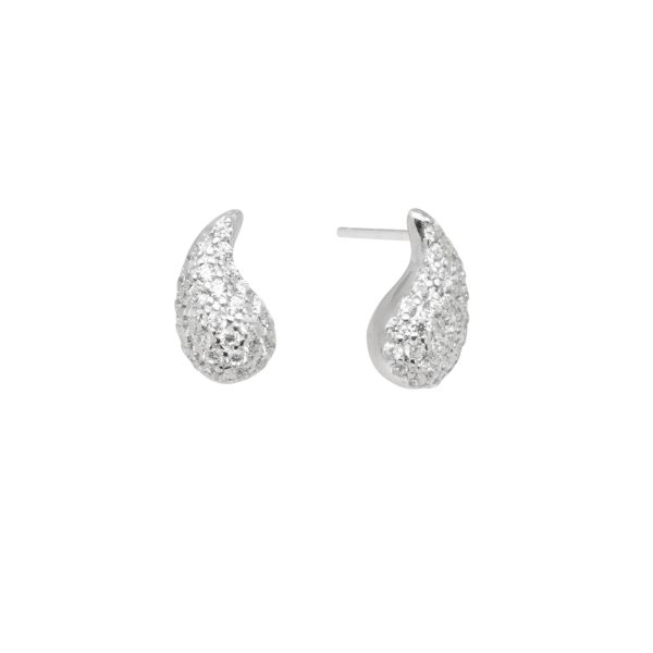 Orecchini pendenti della collezione ‘Tutti pazzi per il colore’ di Chimiama Gioielli realizzati in argento 925 a forma di goccia ed arricchiti da zirconi bianchi. Chiusura a farfallina