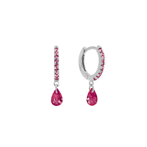 Orecchini della collezione ‘Tutti pazzi per il colore’ di Chimiama Gioielli realizzati in argento 925 ed arricchiti da pendente a forma di goccia di colore rosso. Chiusura a scattino