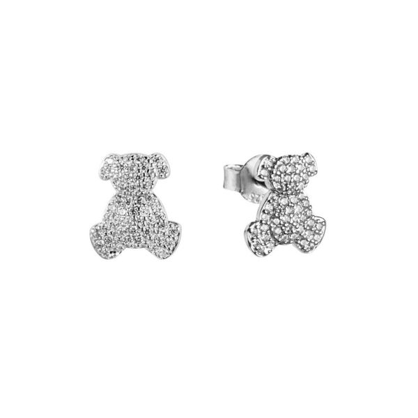 Orecchini realizzati in argento 925 arricchiti da zirconi bianchi a forma di orsacchiotto, chiusura a farfallina