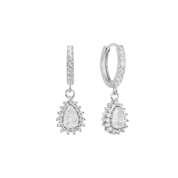 Orecchini della collezione ‘Tutti pazzi per il colore’ di Chimiama Gioielli realizzati in argento 925 con pendente a forma di goccia con contorno di zirconi bianchi. Chiusura a scattino