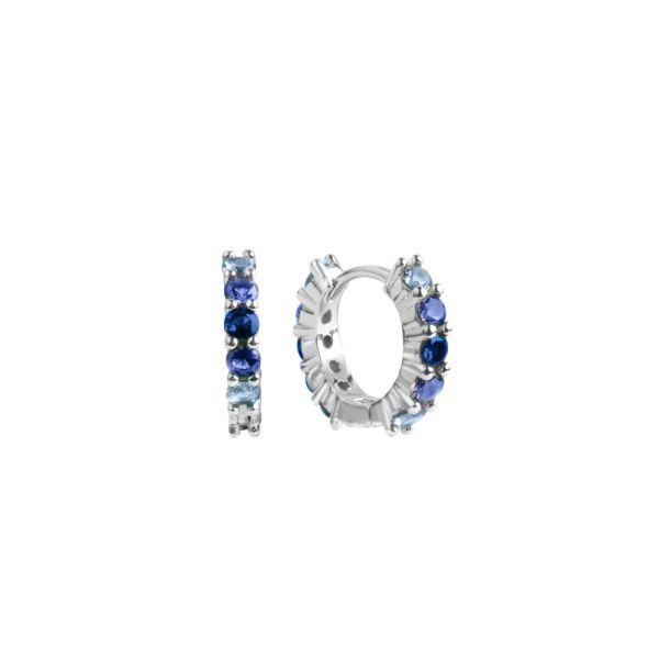 Orecchini della collezione ‘Tutti pazzi per il colore’ di Chimiama Gioielli realizzati in argento 925 ed arricchiti da pietre di colore blu di diverse sfumature. Chiusura a scattino