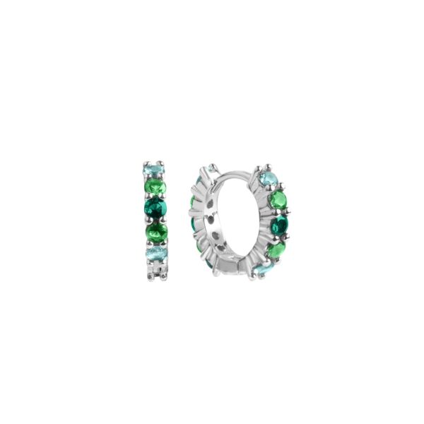 Orecchini della collezione ‘Tutti pazzi per il colore’ di Chimiama Gioielli realizzati in argento 925 ed arricchiti da pietre di colore verde. Chiusura a scattino