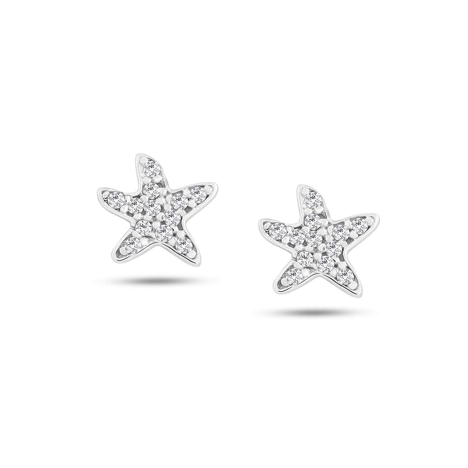 Preziosi orecchini della linea Ambrosia Gioielli realizzati in oro bianco 750% e forma di stella marina. Arricchiti da pavé di zirconi bianchi e chiusura a farfallina