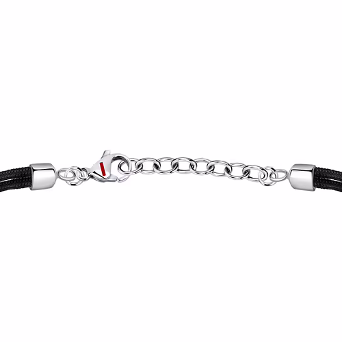 Bracciale della collezione ‘Marine’ di Sector realizzato in acciaio e corda, arricchito da motivo centrale a forma di bussola. Chiusura a moschettone e misura regolabile grazie ad una serie di anellini terminali