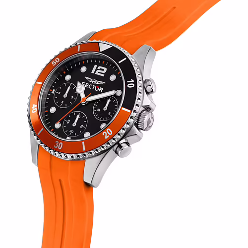 Orologio Sector della collezione 230. Genere: uomo, materiale e finitura cassa: acciaio e materiale sintetico, misura cassa: 39 mm, spessore cassa: 11,4 mm, colore cassa: silver, vetro: vetro minerale, materiale cinturino: plastica, colore cinturino: arancione, chiusura: fibbia ardiglione, movimento: quarzo, water resistant: 10 atm, garanzia ufficiale 2 anni Sector, confezione originale Sector